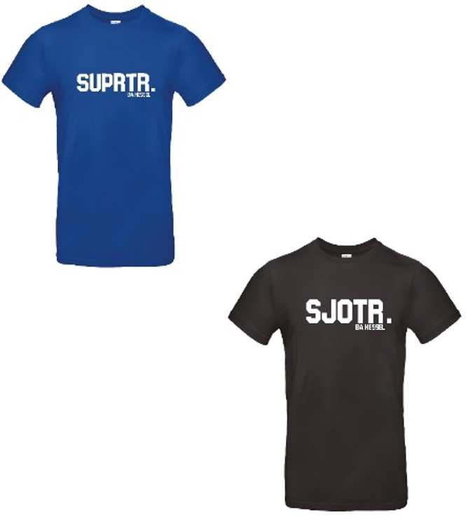T-shirt SUPRTR. ba Hessel (BLAUW of ZWART) extra